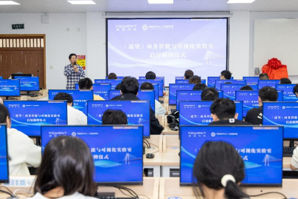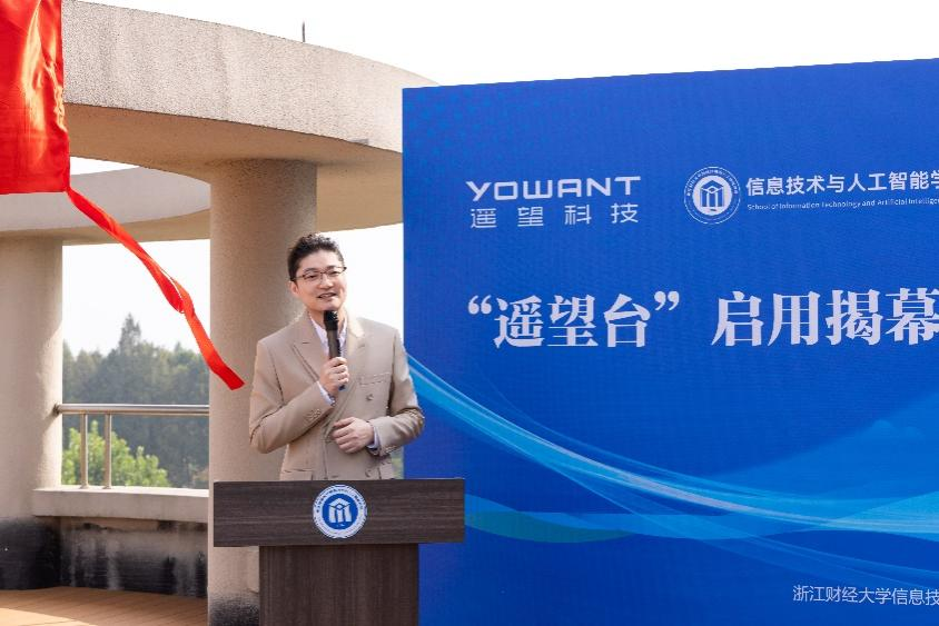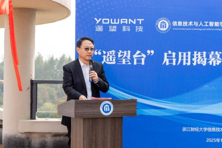 2025年11月1日,浙江财经大学信息技术与人工智能学院“遥望台”启用揭幕仪式、遥望科技“商务智能与可视化实验室”启用揭牌仪式在9号楼隆重举行。浙江财经大学副校长李占荣,遥望科技董事长兼CEO、2005届计算机专业校友谢如栋,遥望科技技术总监黄邦波,遥望科技总编辑沈海波,校友办公室主任吴玻、学院院长张帅、学院领导班子等,以及校友、师生代表参加,仪式由学院党委书记吴翼泽主持。