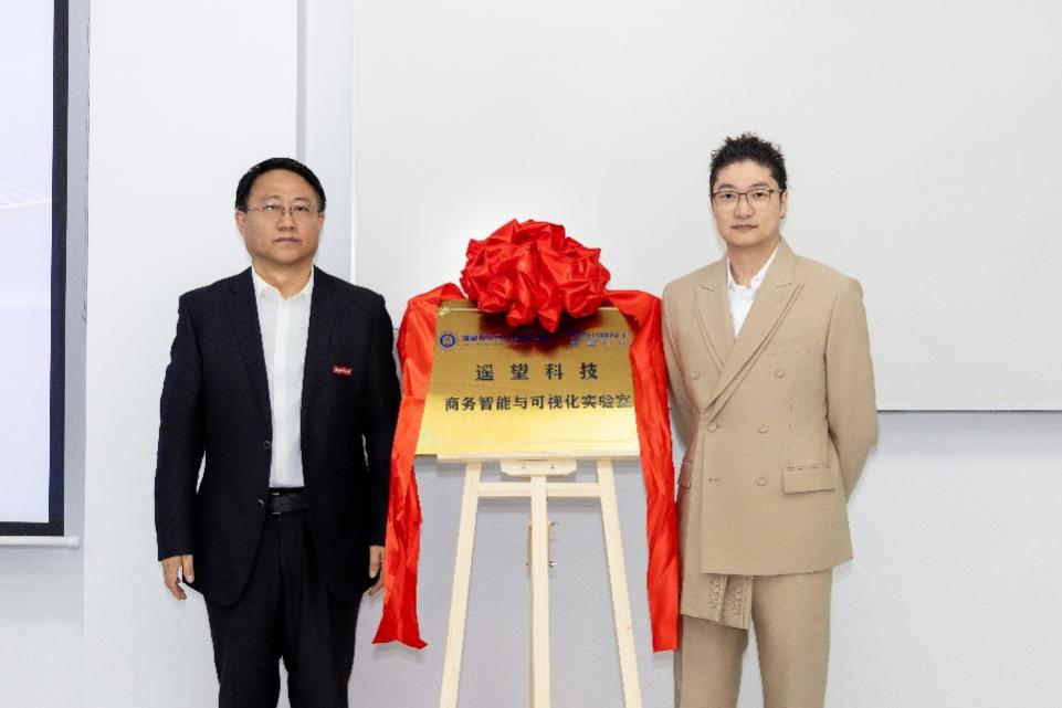 “遥望台”揭牌仪式前,由“遥望基金”支持建设的遥望科技“商务智能与可视化实验室”也正式揭牌启用。副校长李占荣、校友谢如栋共同为遥望科技“商务智能与可视化实验室”揭牌,现场响起了热烈的掌声,这标志着我院在推进“新财经战略”建设、深化产教融合的征程上又迈出了坚实的一步。