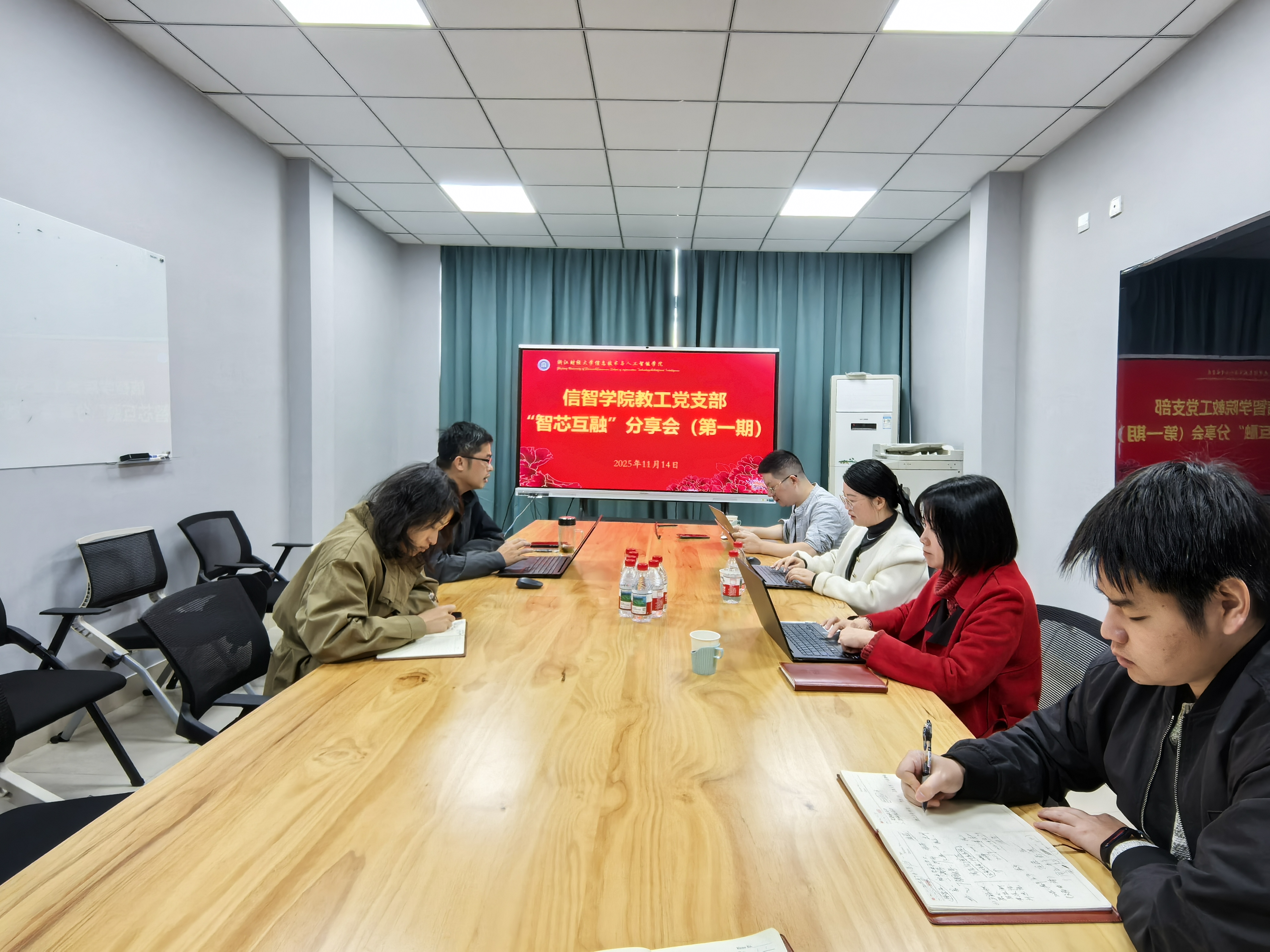 11月14日,学院举行教工党支部“智芯互融”分享会(第一期),学院党委书记吴翼泽,副书记吴轶韵,教工第一党支部书记、副院长朱凌,教工第二党支部书记宋海裕,教工第三党支部书记彭莉莎等参加活动。