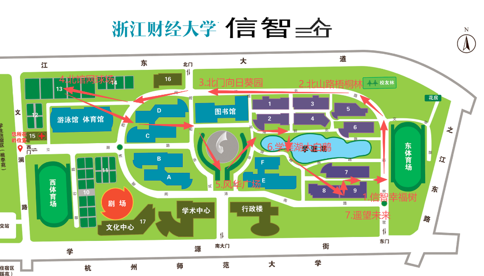 从孕育智慧的学院楼后“网红树” 下出发,感受四季流转的生命力;漫步至校园北路梧桐林,在落叶纷飞中体会岁月的沉淀与坚守;行至北门向日葵园,正如教师们始终心向阳光、立德树人的初心;途经北馆网球场,展现教师们课堂之外的活力与风采;抵达图书馆前风华广场,回望教书育人、作育英才的使命与荣光;踱步学涯湖畔,与悠然的大白鹅一同享受片刻的宁静与闲适;最终登临学院四楼“遥望台”,极目远眺,共同畅想学院与学校未来发展的宏伟蓝图。
