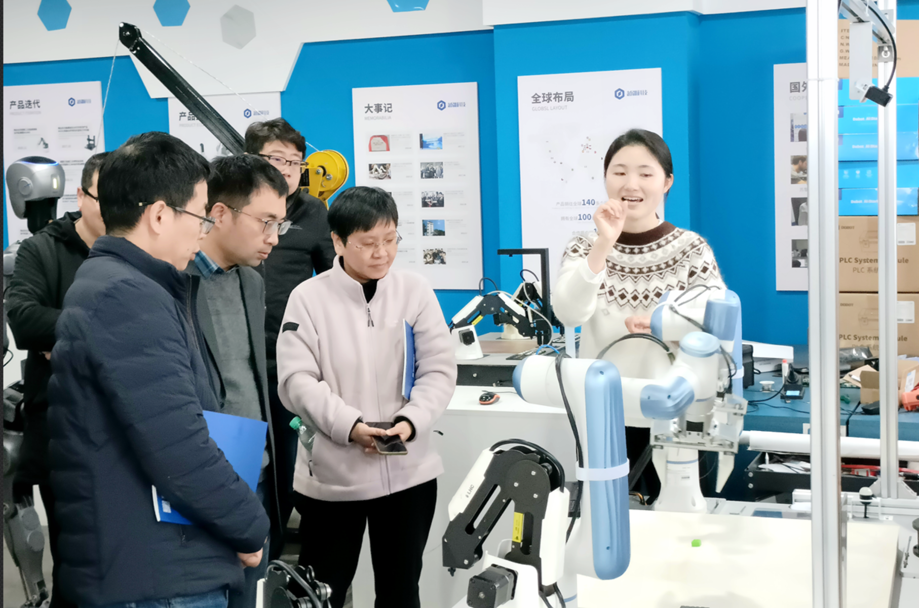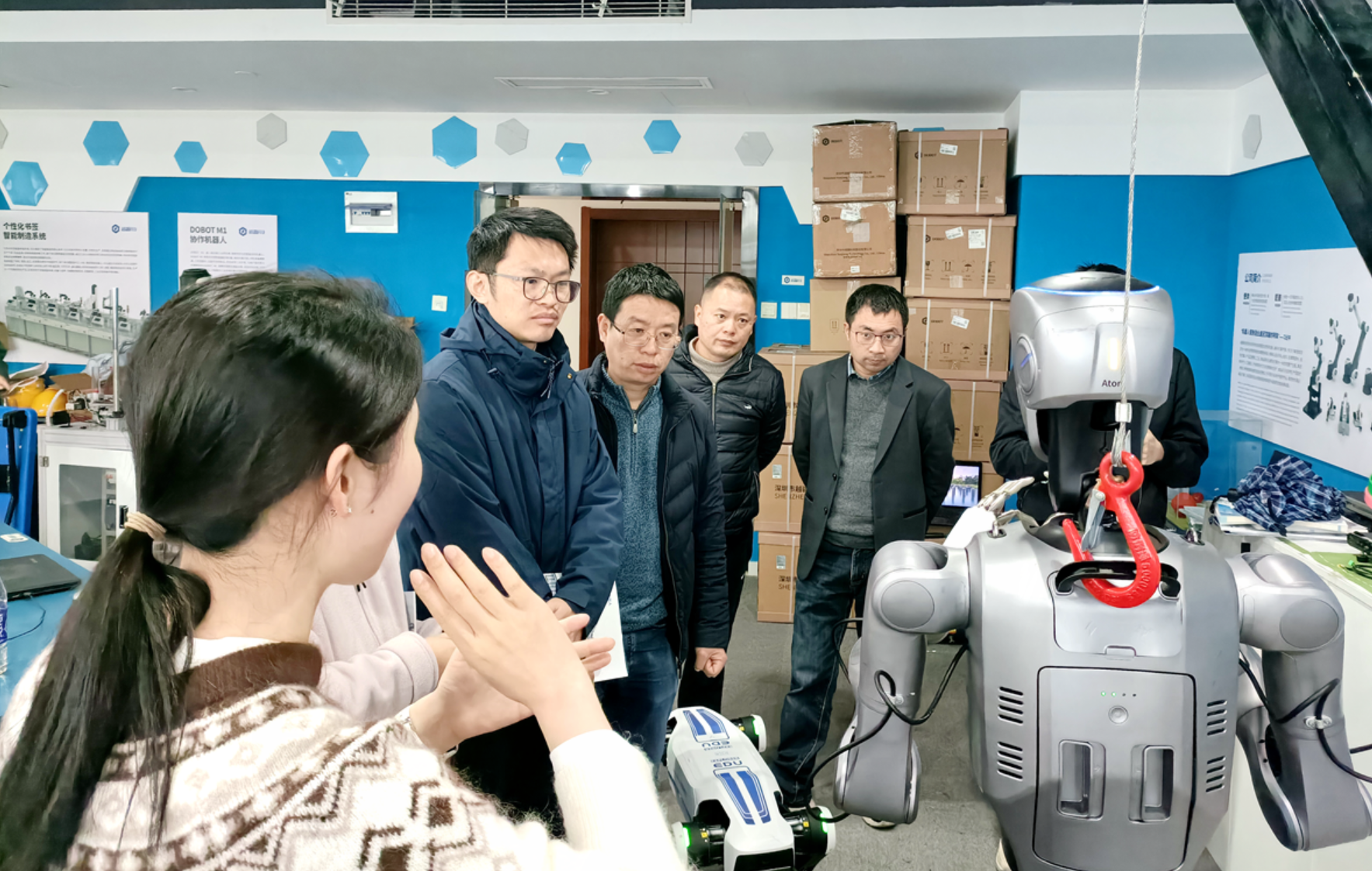 为加强实验教学与产业前沿的对接,推动人工智能、计算机及软件工程等相关专业的协同发展,3月24日上午,学院实验中心联合计算机系、人工智能系、软件工程系组成调研组,赴越疆机器人杭州分中心开展专题考察交流。调研组由实验中心教师、计算机系冯小青副教授、杨泽博士、人工智能系主任陈琰宏、软件工程系主任涂乐等组成,此次活动核心是了解具身智能领域技术进展与教育应用,探索产教协同人才培养新模式。