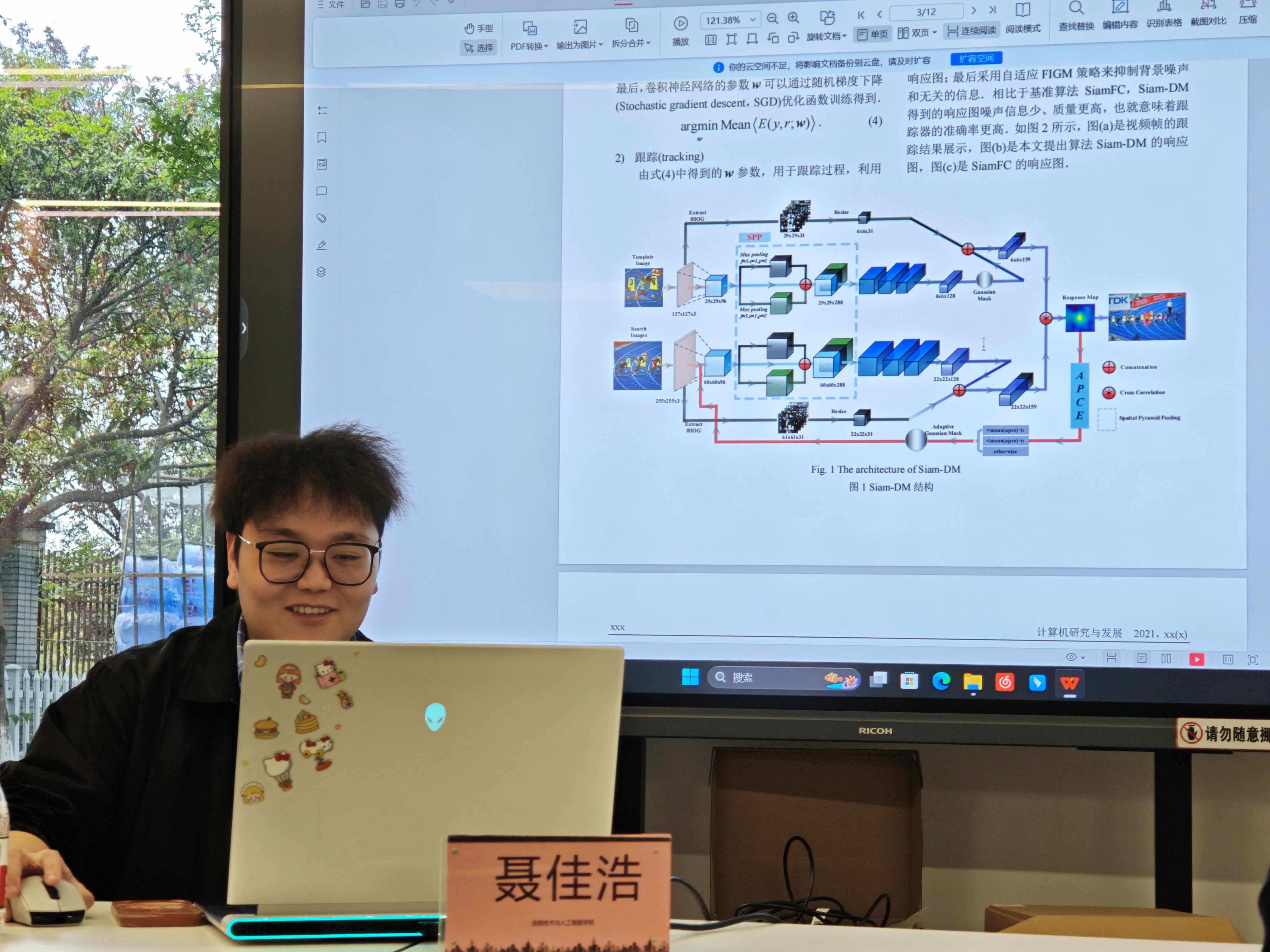 活动伊始,聂佳浩博士结合自身从科研入门、逐步深耕到扎根领域的完整成长历程,为在场师生带来了一场干货满满的专题分享。他坦言,读研初期曾面临入学焦虑与入门困境,从每天高强度投入基础学习、反复打磨第一篇论文,到首次投稿遭遇拒稿,再到逐步摸清学术论文底层逻辑,最终接连斩获AAAI、IJCAI等CCFA类顶会Oral录用,以及TMM、TCSVT等顶刊发表的机会。科研成长从无捷径可走,唯有在反复试错与持续精进中稳步前行,这一分享也让同学们真切感受到顶会顶刊并非遥不可及,有效打破了横亘在学子与高水平科研之间的心理壁垒。