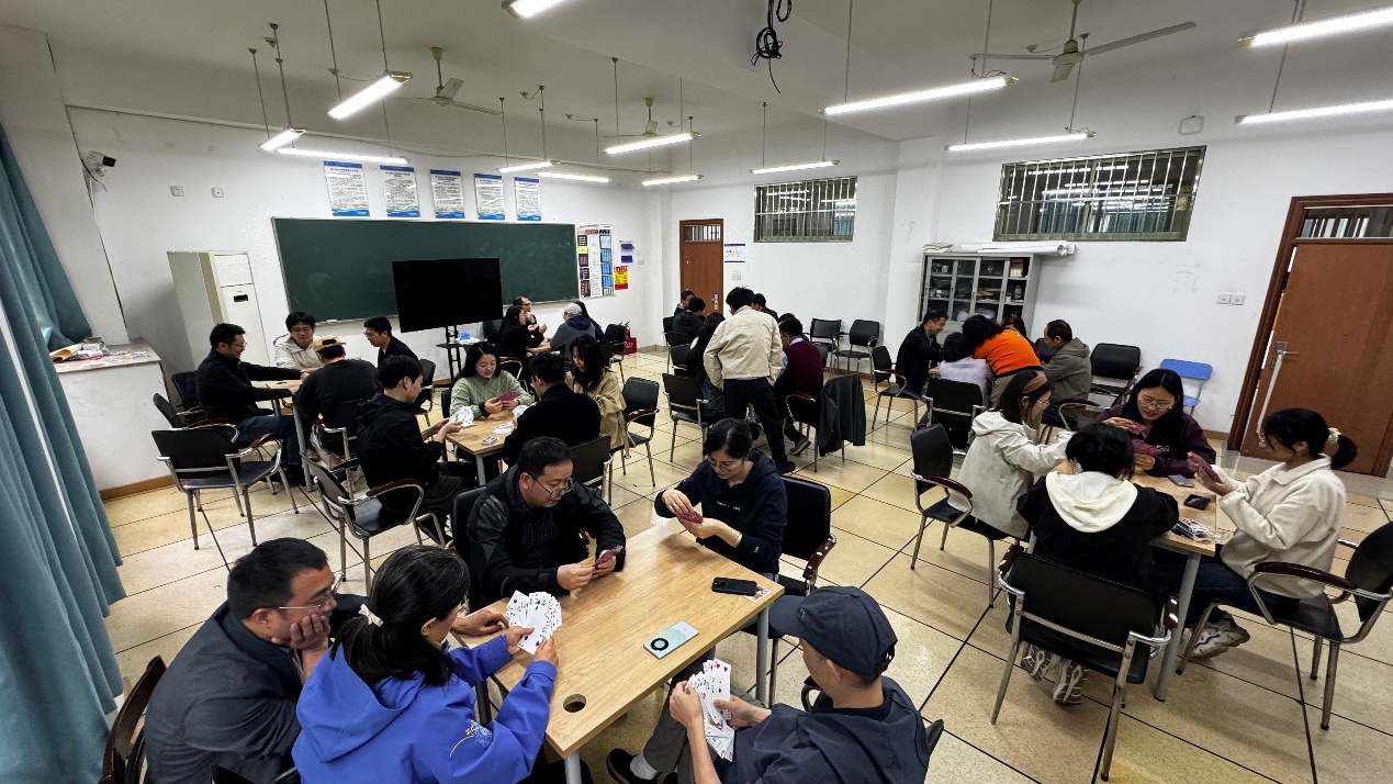 整场活动气氛热烈,教师们的参与热情空前高涨。一场场博弈,承载着智慧与勇气的碰撞,有效释放了平日紧张的工作压力。平日里忙于教学科研的老师们,在棋盘与牌桌上展露了别样的风采,欢声笑语中拉近了彼此的距离,展现了昂扬向上、团结协作的精神风貌,达到了锻炼心智、陶冶情操、凝聚合力的目的。此次活动的成功举办,不仅丰富了教职工的业余生活,更为凝聚团队合力、建设和谐学院注入了新的活力。