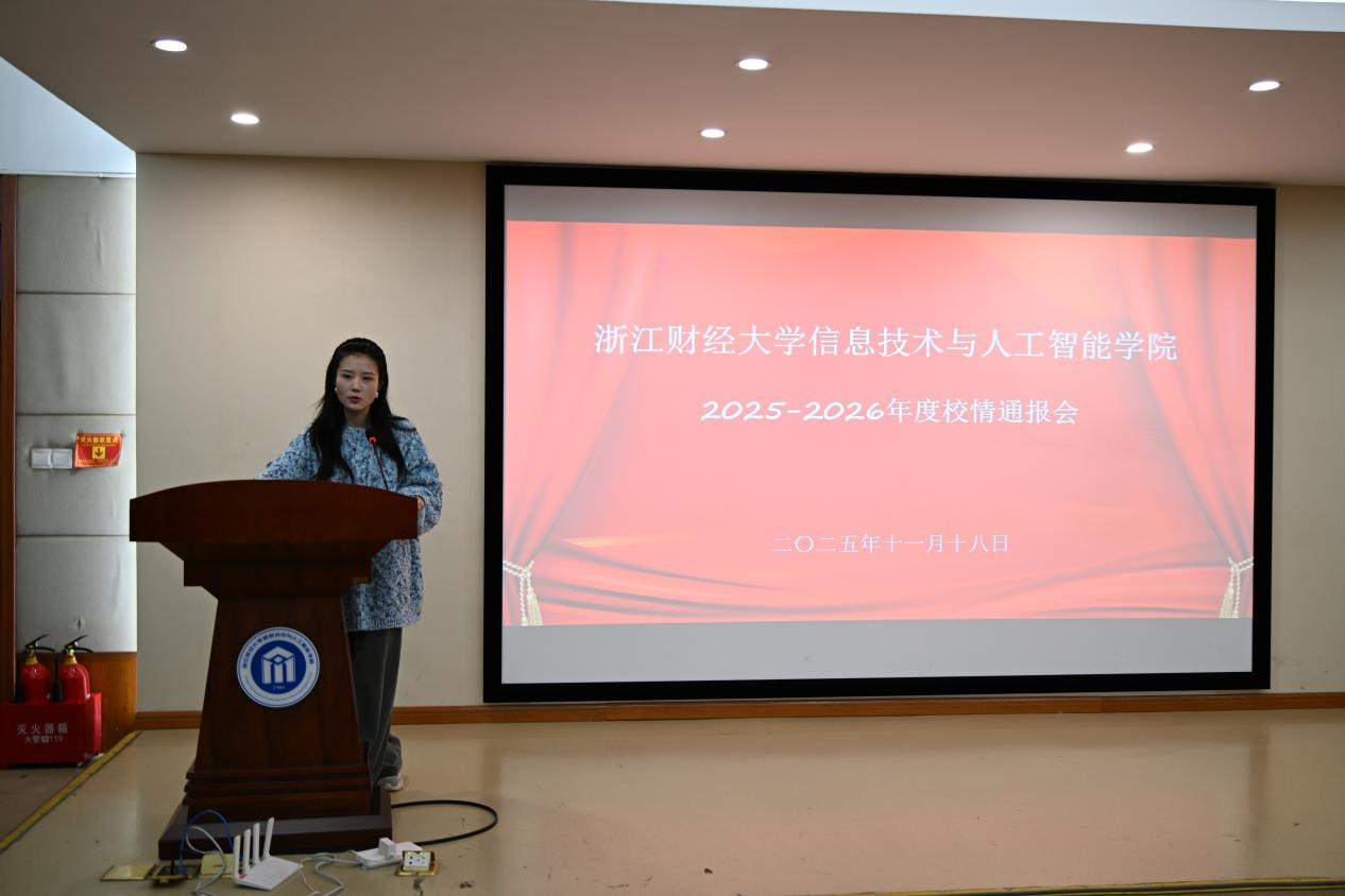 为及时回应学生关切,切实解决学生在学习生活中遇到的实际问题,2025 年 11 月18日,信智学院在9302会议室召开校情通报大会。学院团委书记赵梦瑶老师、23级辅导员徐军军老师、史光花老师及学生会各部门负责人与部门成员出席本次会议。