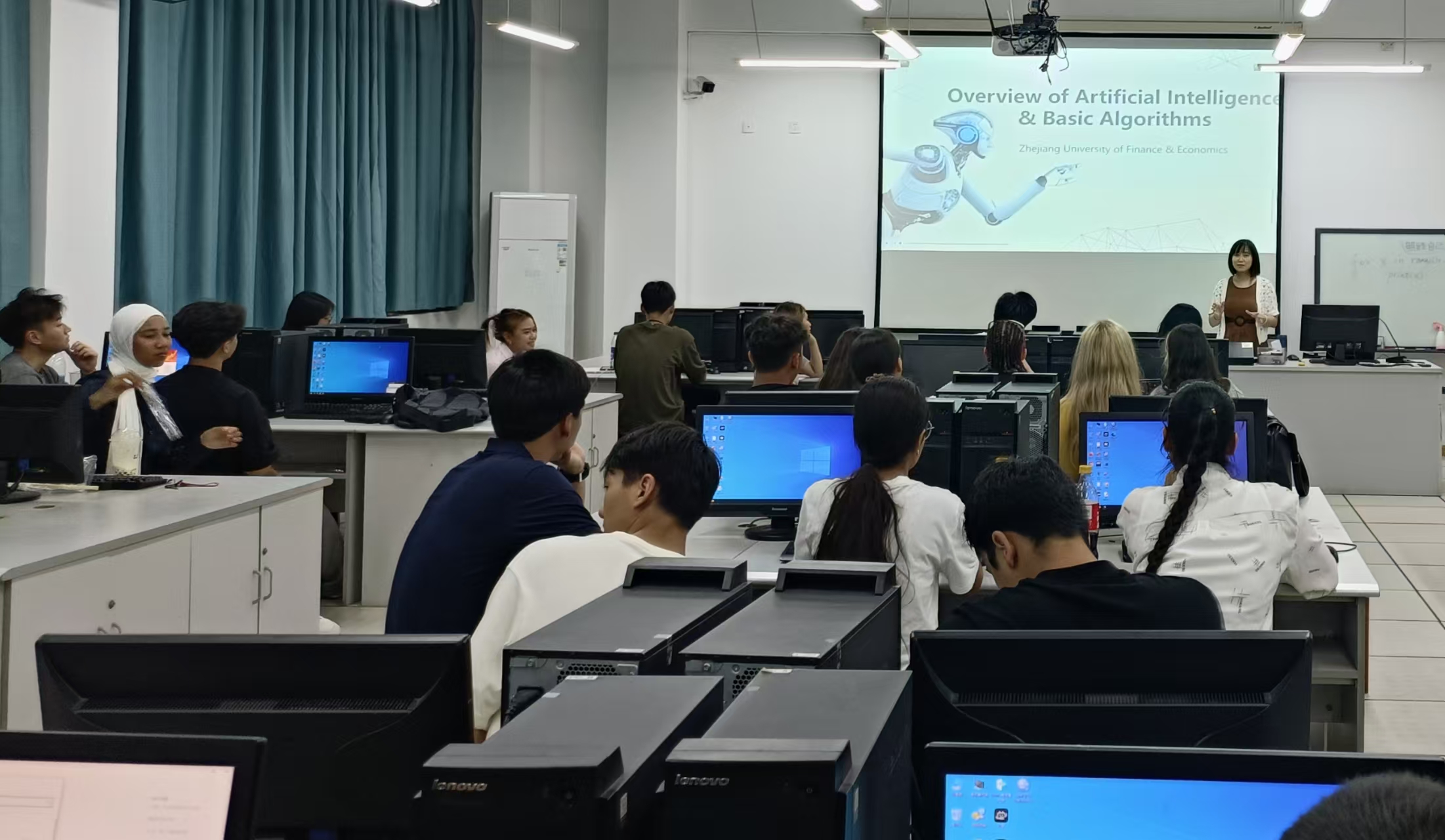 作为我校国际化办学进程中的重要一环,留学生教育工作自启动以来,始终注重课程体系的多元构建与教学质量的稳步提升。本学期,信智学院积极响应浙江省高校人工智能通识课程全覆盖与教育国际化的号召,进一步为25级国际留学生新生增设《Introduction to Artificial Intelligence》,并同步建设“浙财学堂”同名线上课程,以线上线下混合式方式开展人工智能国际化通识教育,旨在帮助各国留学生快速融入中国学习环境,探索人工智能在财经领域的深度应用。