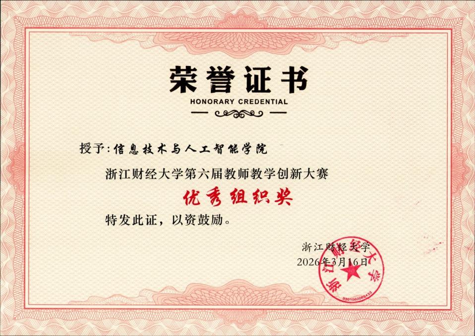同时,因我院在本届教创赛中的积极组织与优秀表现,学校特别授予我院“优秀组织奖”,这既是对学院教学工作的高度肯定,也是对全院教师共同努力的褒奖。