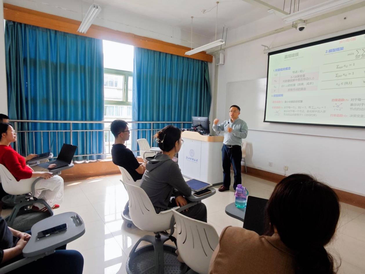 《智能优化与决策》是一门兼具学科交叉性与学术前沿性的博士生课程,聚焦智能优化领域的核心理论与实践应用,本次课堂中,林剑教授以“蚁群优化算法及其应用”为主题展开授课。课堂上,林剑教授围绕蚁群算法的基本原理、优化机制、应用场景等内容进行了深入浅出的讲解,将算法理论与实际决策问题紧密结合,引导学生理解智能优化方法在复杂决策场景中的应用逻辑。授课过程中,林剑教授注重启发式教学,通过问题引导、案例分析等方式,激发学生的学术思考,展现了小班化教学在师生互动、思维碰撞上的独特优势。