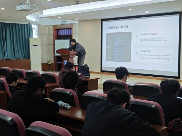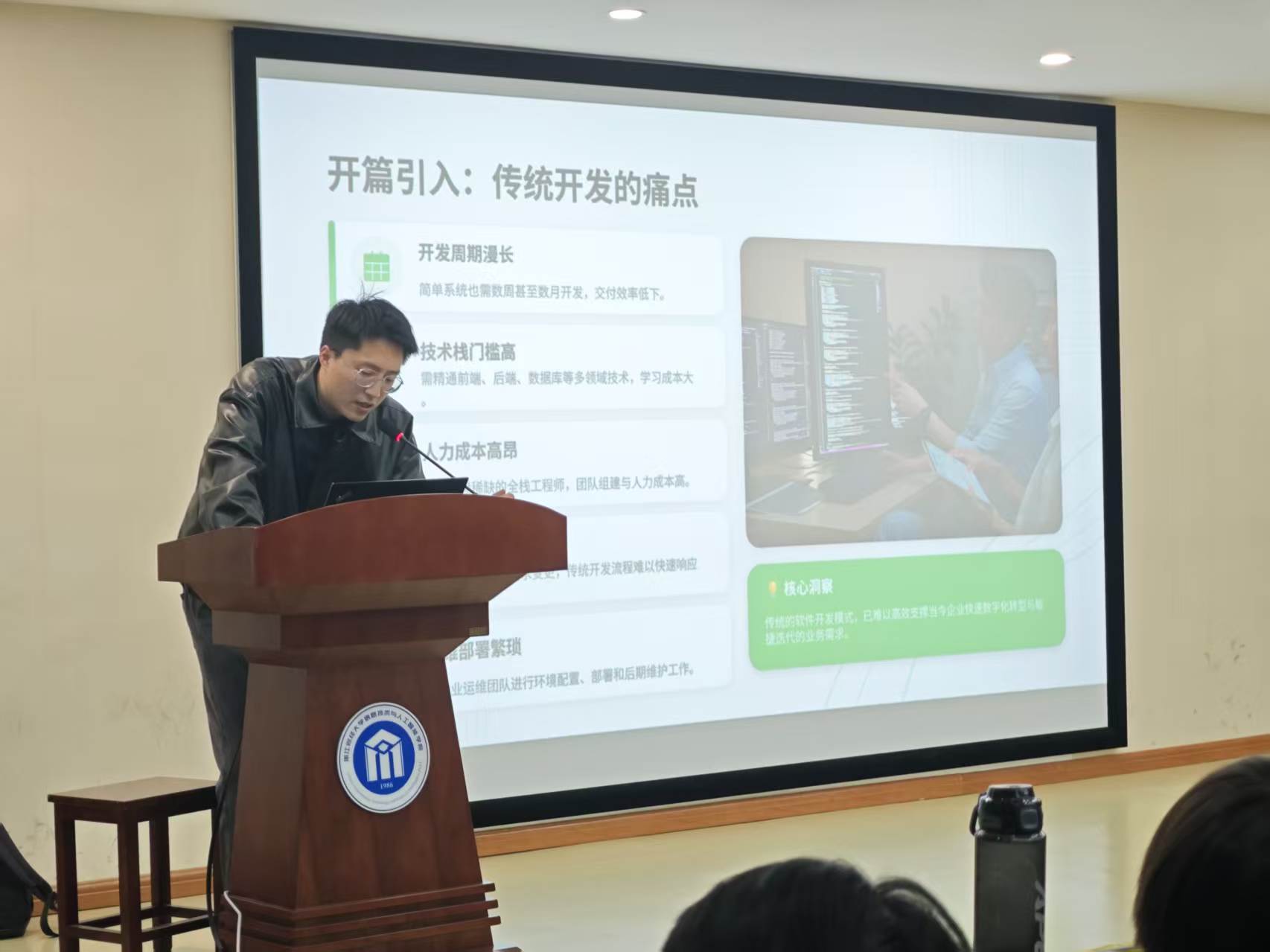 整场讲座兼具专业性与实用性,现场气氛活跃,不仅帮助同学们系统了解了低代码开发这一前沿技术,也为大家搭建了接触行业一线实践经验的桥梁,对学院培养兼具理论基础与实践能力的数字化人才具有积极意义。