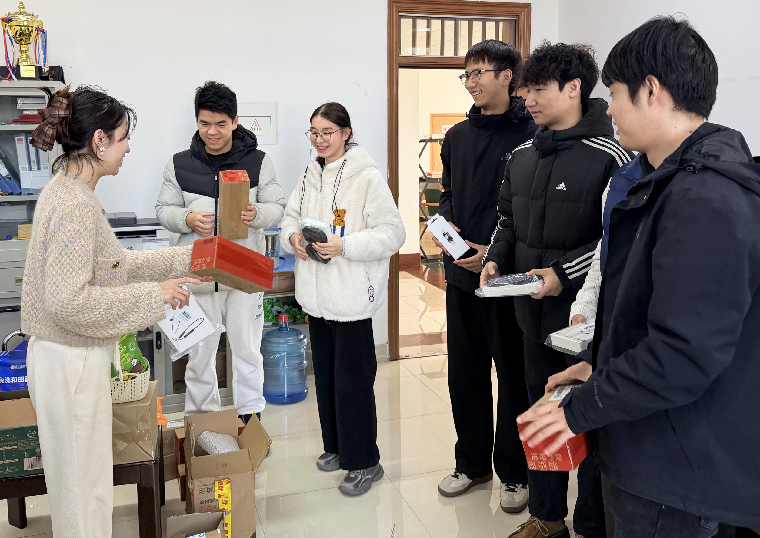 学院为参赛获奖学生发放奖品。